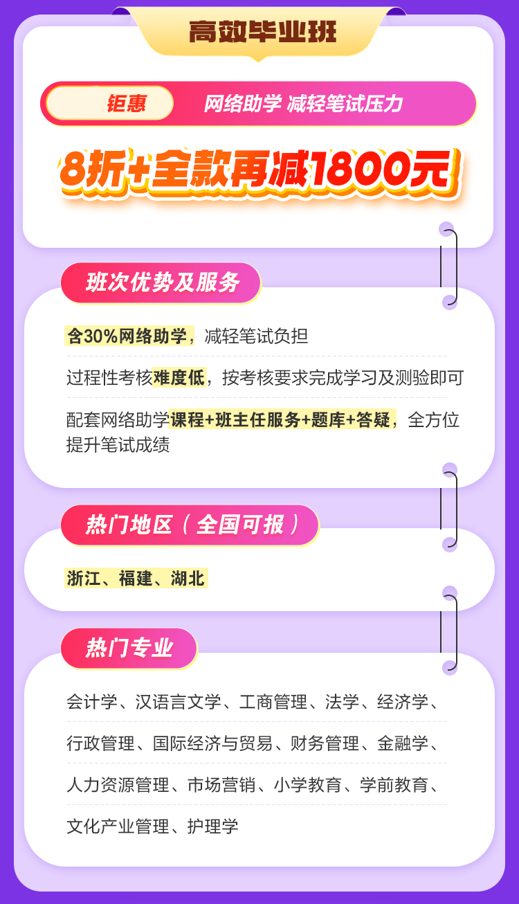 在此期间,自考365将送上超低折扣。想要提升学历的同学抓紧机会锁定名额吧。