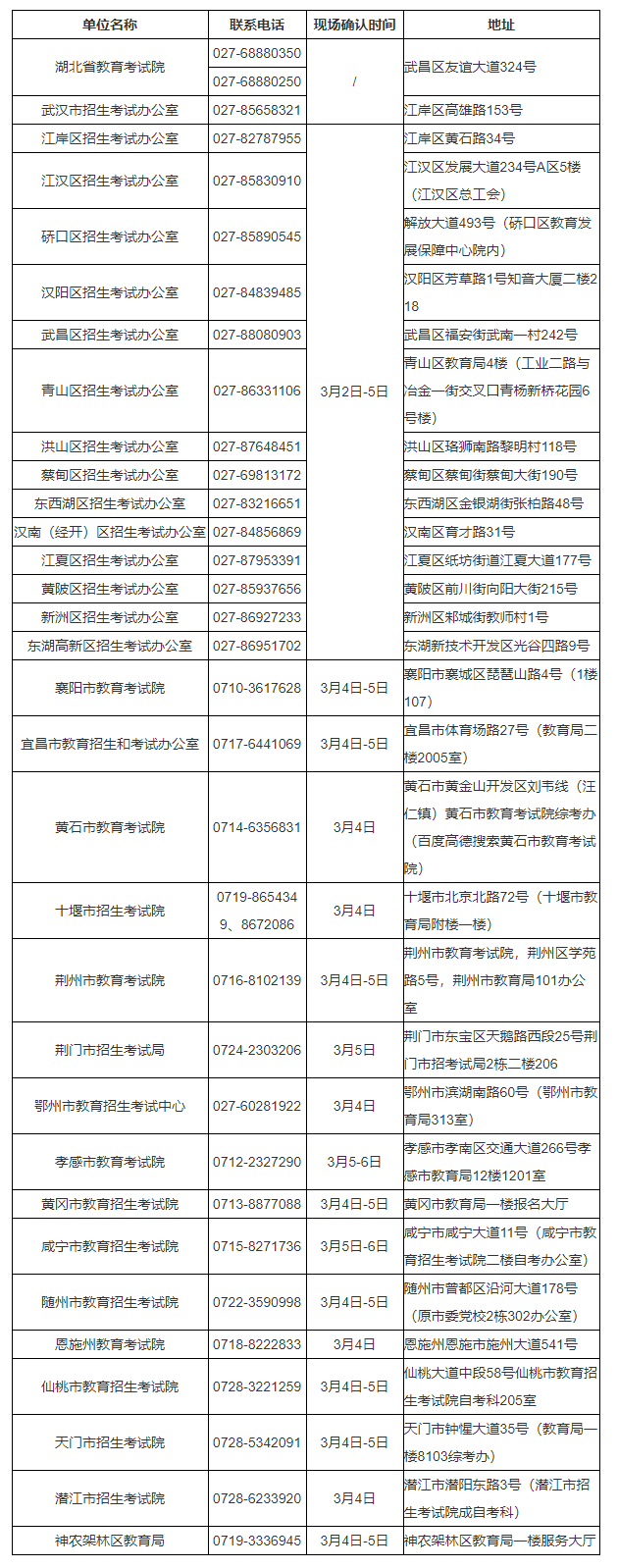 八、报名咨询电话(3月2日至6日)及现场确认信息